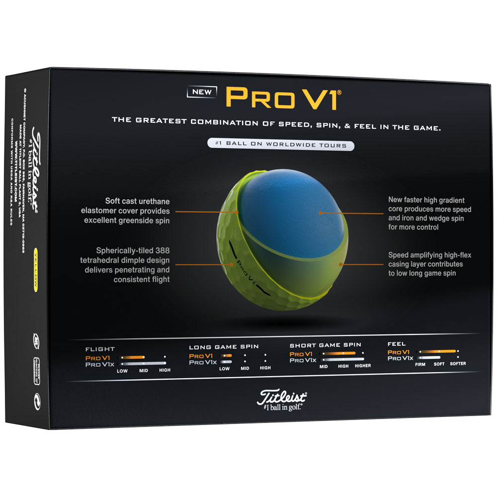 Titleist Pro V1 Golf Balls - Yellow - 12 Pack