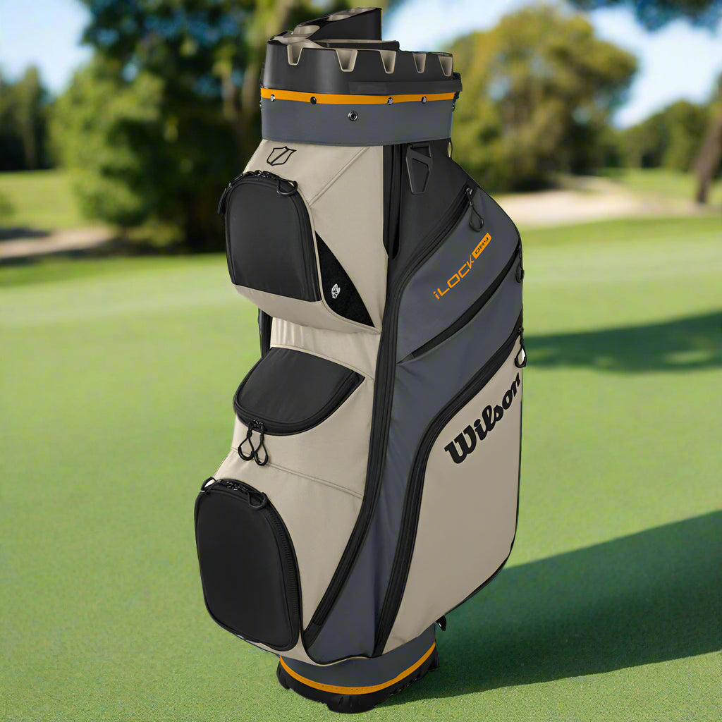 Transport your clubs with ease with the I Lock Dry cart bag from Wilson, with a 14-way top that included 4-full length dividers to help keep your clubs organized and prevent crowding for quick access when you need it most.